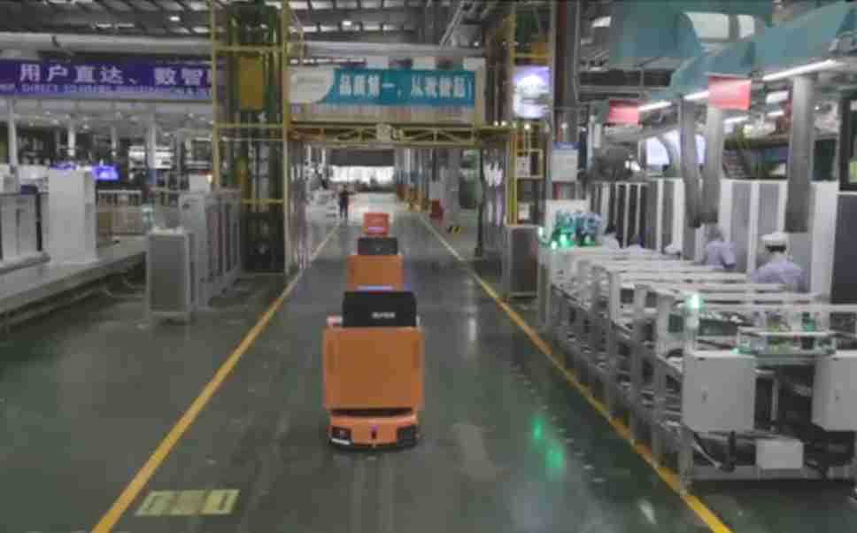 为车载冰箱物流配送打造的智能解决方案,,包含产中物流通过潜伏举升AMR搬运至线边,,产后成品物流智能仓储,,,,流程包含产中物流智能齐套入库,,,,线边安灯叫料AMR智能配送至线边,,成品入库、、、、出库,,,,通过无人堆高车机器人,,,智能仓储管理替代人工作业管理,,,实现更高存储、、、更高效率、、、更具柔性化的解决方案。。